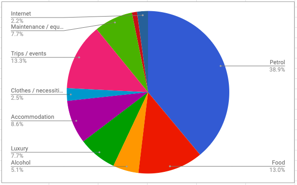 - Petrol was our major expense, We used a lot of 95 (lots of places didn't have 98), and this was still expensive.